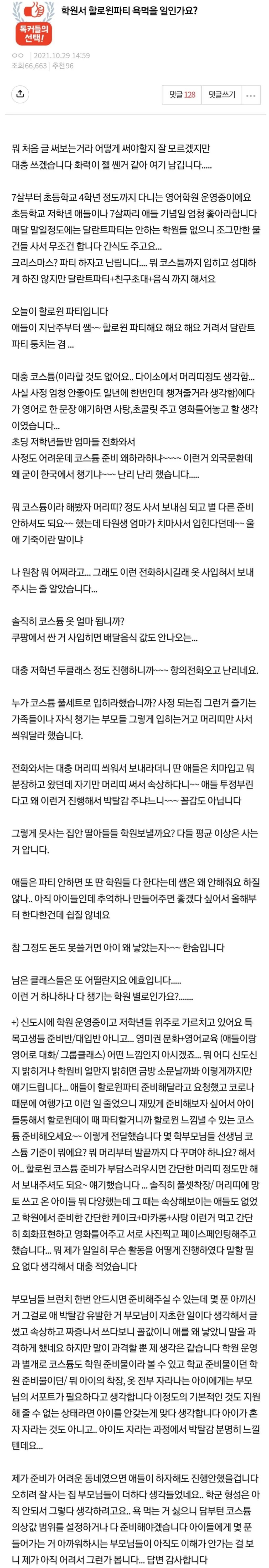학원서 할로윈 파티 욕 먹을 일인가요?