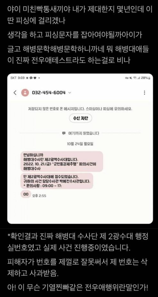 해병대에게 피싱 문자 받은 전역자