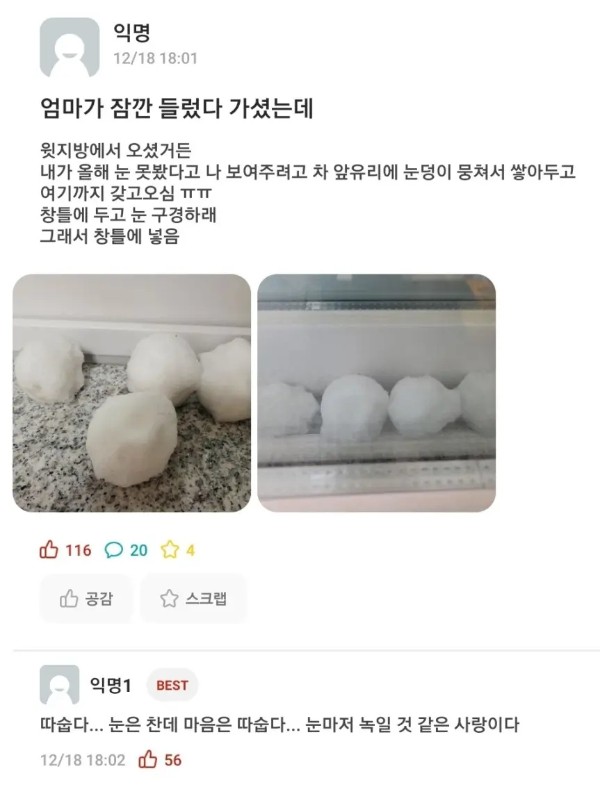 눈 못 봤다는 자식을 위한 엄마의 선물
