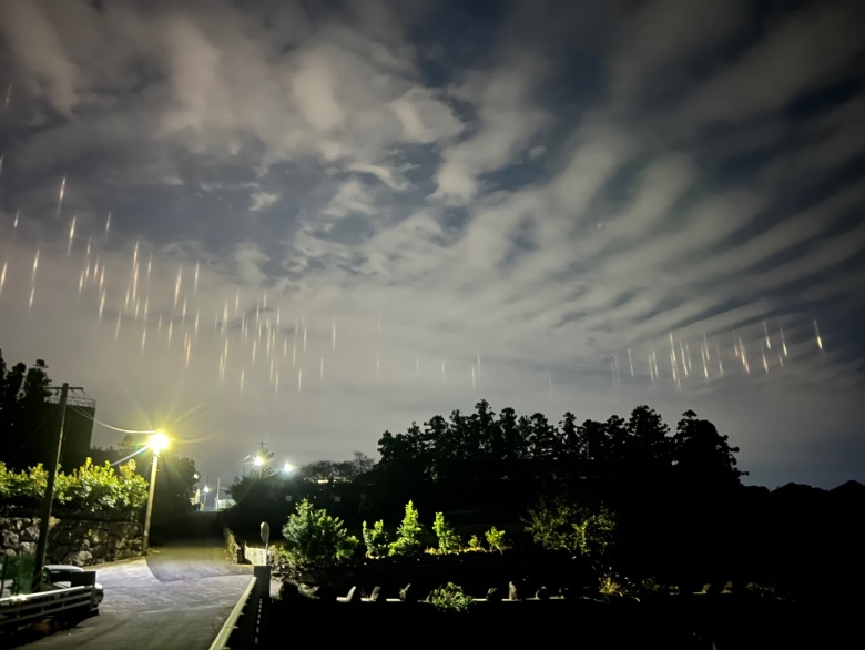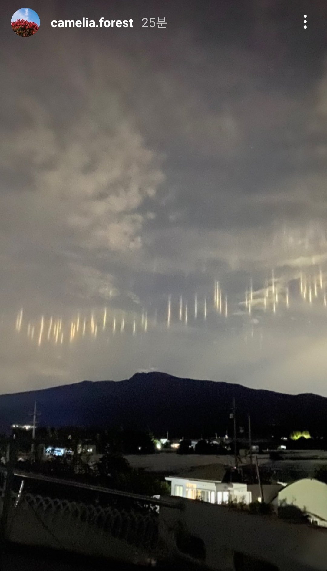 오징어잡이 배의 집어등이 구름에 비치는 현상이라고 함