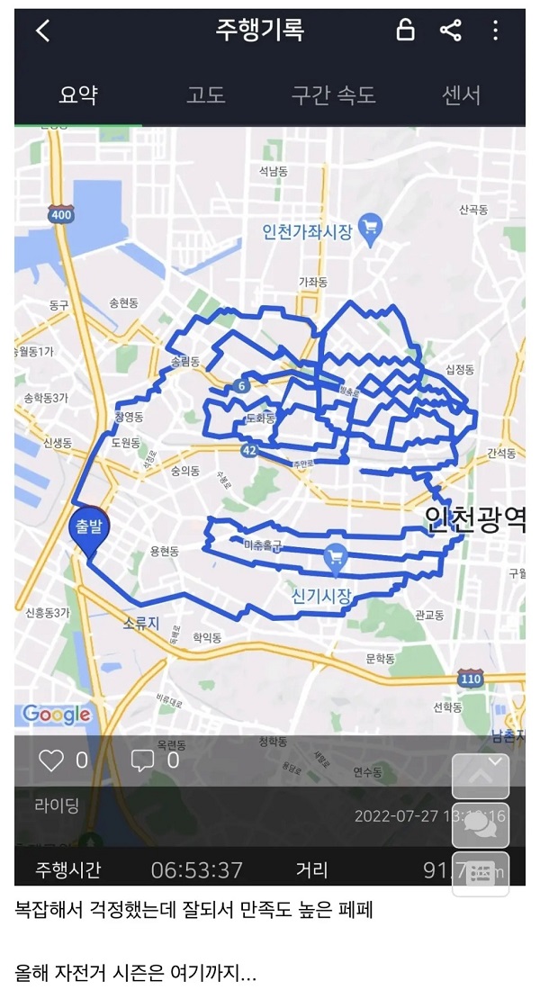 자전거 주행 경로로 그림 그리는 사람 > 피클포털
