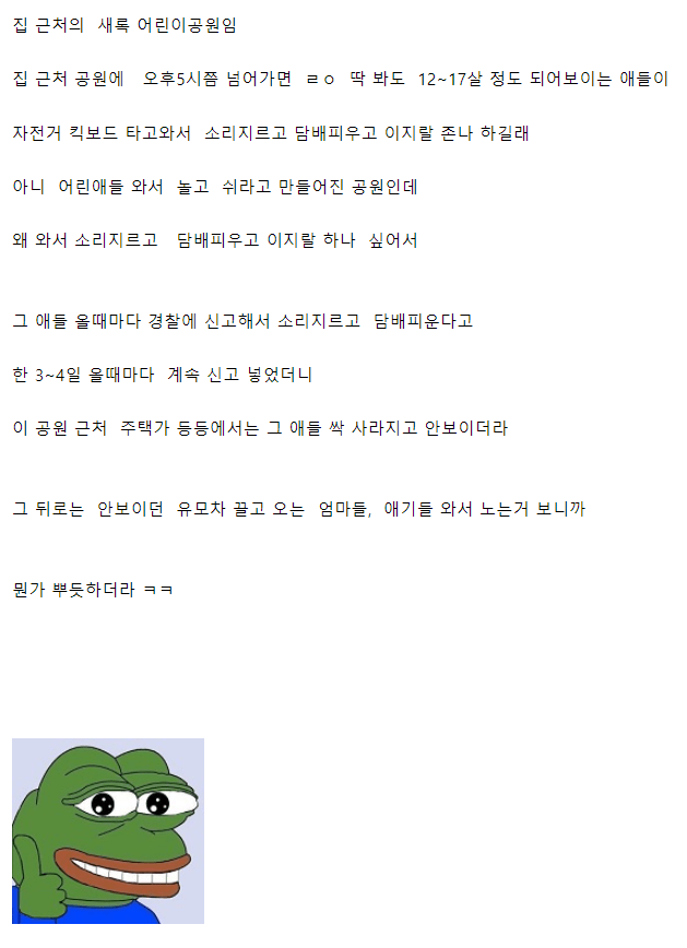 집 근처 촉법소년단 쫓아낸 사람 본문 0 피클포털 목록 EVENT) 지금 로그인 후 광고 제거 혜택을 받으세요! TIP) 초승달 아이콘을 누르고 어두운 화면으로 전환 해보세요 TIP) 본문 하단 무지개 로켓을 누르고 시간 여행을 떠나보세요 TIP) 빈 공간을 두 번 누르면 맨 아래로 바로 갈 수 있어요 TIP) 편지 아이콘이 무지개 빛으로 빛난다면 쪽지가 온거에요 TIP) 본문 하단 댓글 온/오프 버튼으로 숨기거나 펼칠 수 있습니다 종업원 부를 때 가장 적당한 말 22.10.27 11870 누나가 오복이꺼 다 뺏어 먹어야겠다 22.10.27 12555 공부 빼고 다 재밌다는 대학원생 필기체 연습 22.10.27 13218 13세기 이탈리아 볼로냐의 기괴한 경쟁 22.10.27 19305 이탈리아 여자가 느낀 일본 생활 장단점 22.10.27 12045 상 받는데 개긴장함 22.10.27 18670 집 근처 촉법소년단 쫓아낸 사람 22.10.27 11342 딸 알바비 400만원을 빼간 엄마 22.10.27 11462 처음 이전 4873페이지 4874페이지 4875페이지 열린4876페이지 4877페이지 4878페이지 4879페이지 4880페이지 다음 맨끝 게시물 검색 검색대상 제목 내용 제목+내용 댓글작성자 검색어 필수 삭제요청