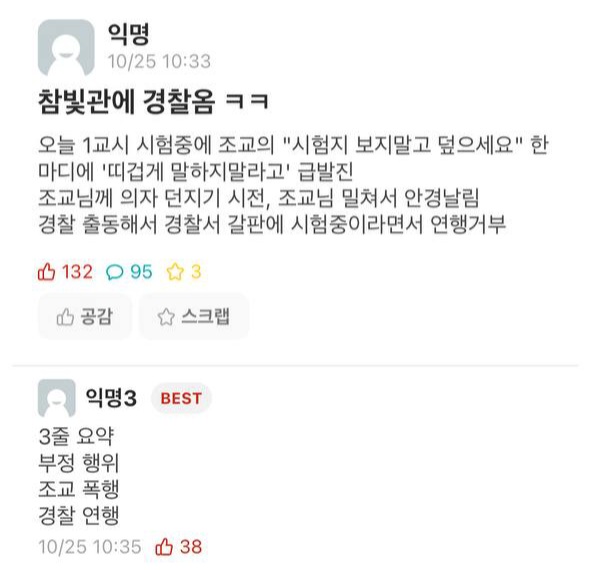 대학교 시험 중 조교 폭행 사건