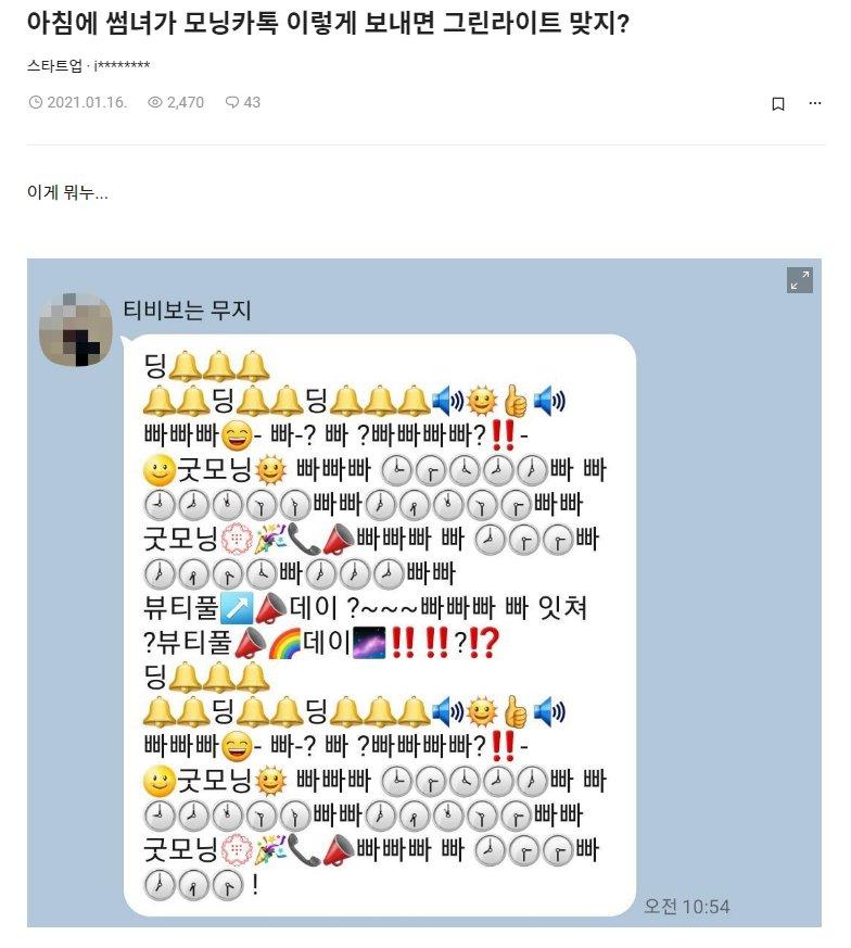 썸녀가 아침에 보낸 모닝 카톡