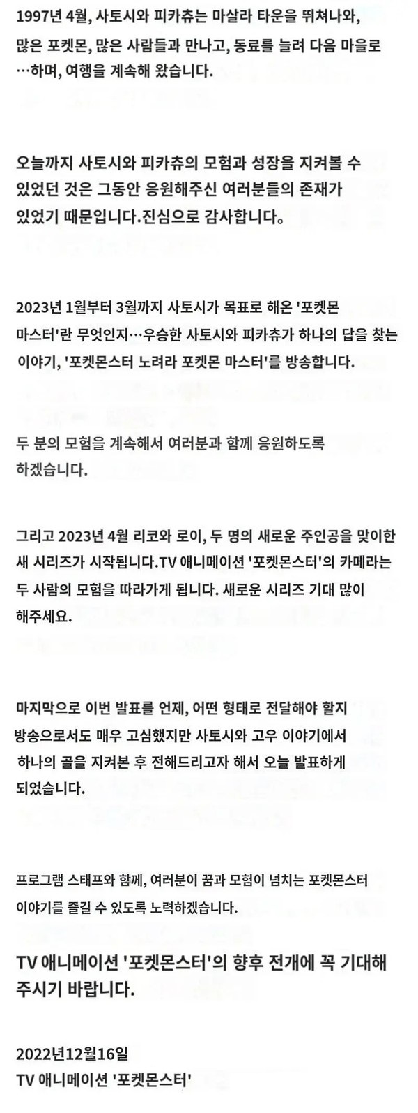 포켓몬 애니메이션 주인공 교체 소식