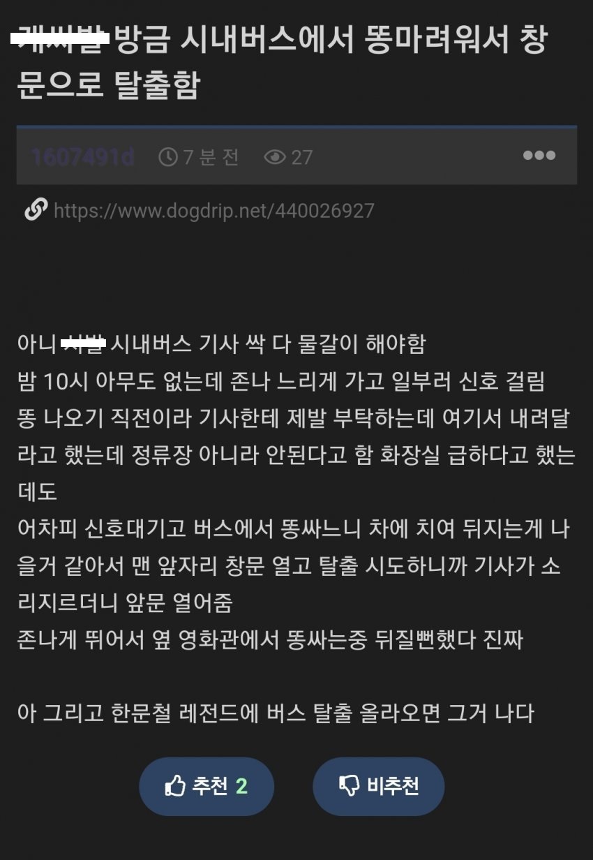 버스에서 똥 참다 창문으로 탈출하려 한 썰