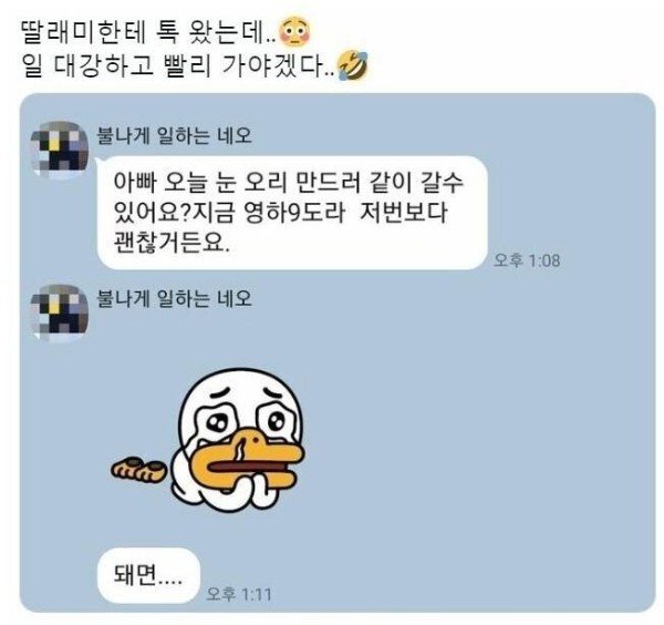 눈 내리는 날 딸이 보낸 카톡