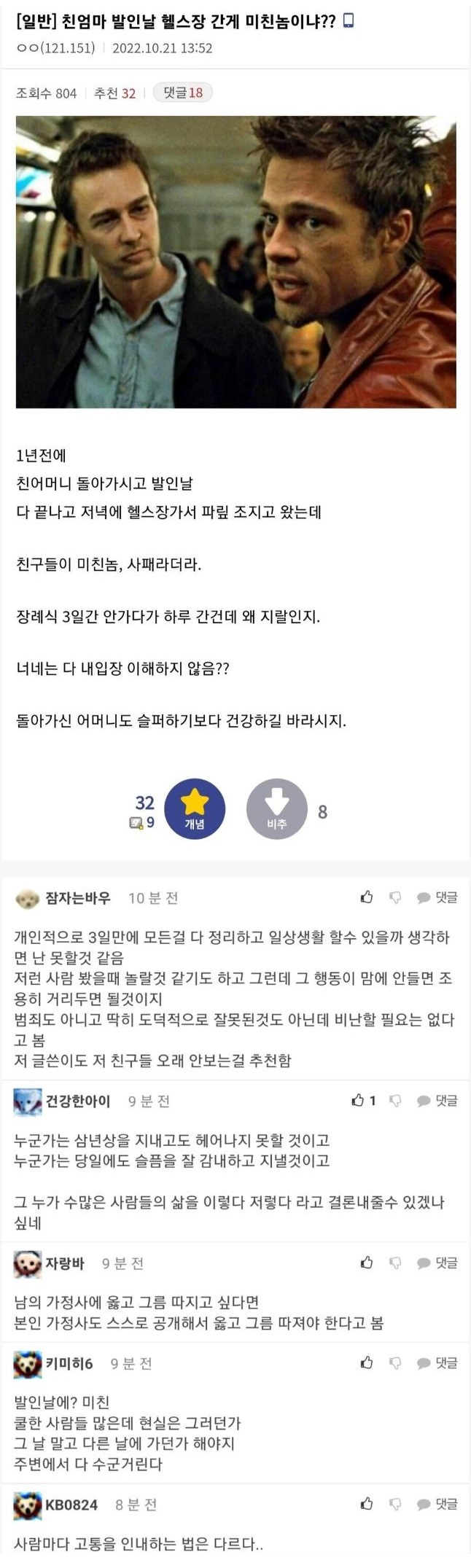 친엄마 발인 후 헬스장 가면 사이코냐?