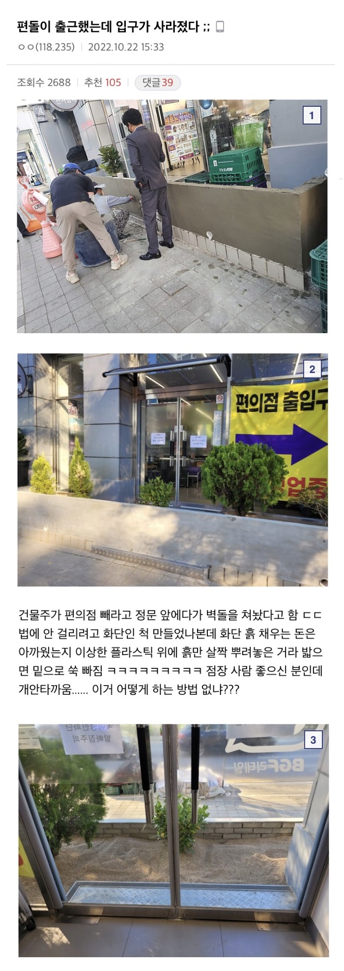 구글이 공개한 사진 편집 AI 본문 0 피클포털 목록 EVENT) 지금 로그인 후 광고 제거 혜택을 받으세요! TIP) 초승달 아이콘을 누르고 어두운 화면으로 전환 해보세요 TIP) 본문 하단 무지개 로켓을 누르고 시간 여행을 떠나보세요 TIP) 빈 공간을 두 번 누르면 맨 아래로 바로 갈 수 있어요 TIP) 편지 아이콘이 무지개 빛으로 빛난다면 쪽지가 온거에요 TIP) 본문 하단 댓글 온/오프 버튼으로 숨기거나 펼칠 수 있습니다 여친이 만들어준 주먹밥 레전드 22.10.24 19673 벌에 씨게 쏘였다는 고양이.. 22.10.24 21372 대전에서 엄마 선물을 사온 아이 22.10.24 13907 평생 고문만 당했다는 왕 22.10.24 14082 남편이 3살 어린 여직원이랑.. 22.10.24 15988 민원 넣는 게 취미였던 공익 22.10.24 13506 호텔만 가본 사람이 모텔을 가게 되면 22.10.24 12673 입구가 사라진 편의점 22.10.24 14654 처음 이전 열린4889페이지 4890페이지 4891페이지 4892페이지 4893페이지 4894페이지 4895페이지 4896페이지 다음 맨끝 게시물 검색 검색대상 제목 내용 제목+내용 댓글작성자 검색어 필수 삭제요청