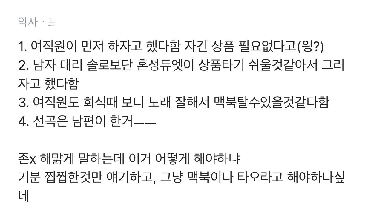 남자입장으론 여직원이 좀 예쁘면 싸한거고 아니면 진짜 맥북이 타고싶은거, 왜냐? 맥북타오면 와이프한테 칭찬받을꺼같거든