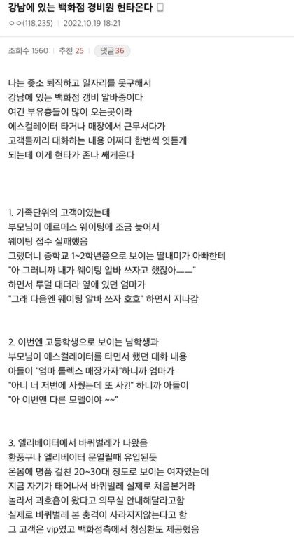 강남 백화점 경비 알바 뛰다가 현타 온 이유