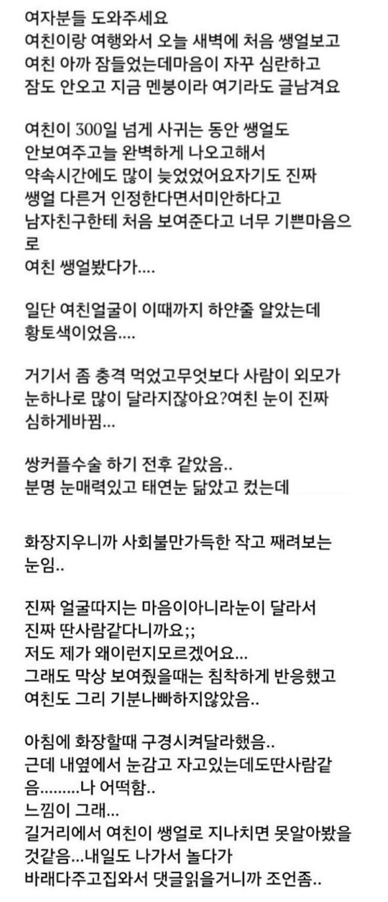 300일 넘게 사귀고 여친 쌩얼 처음 봄