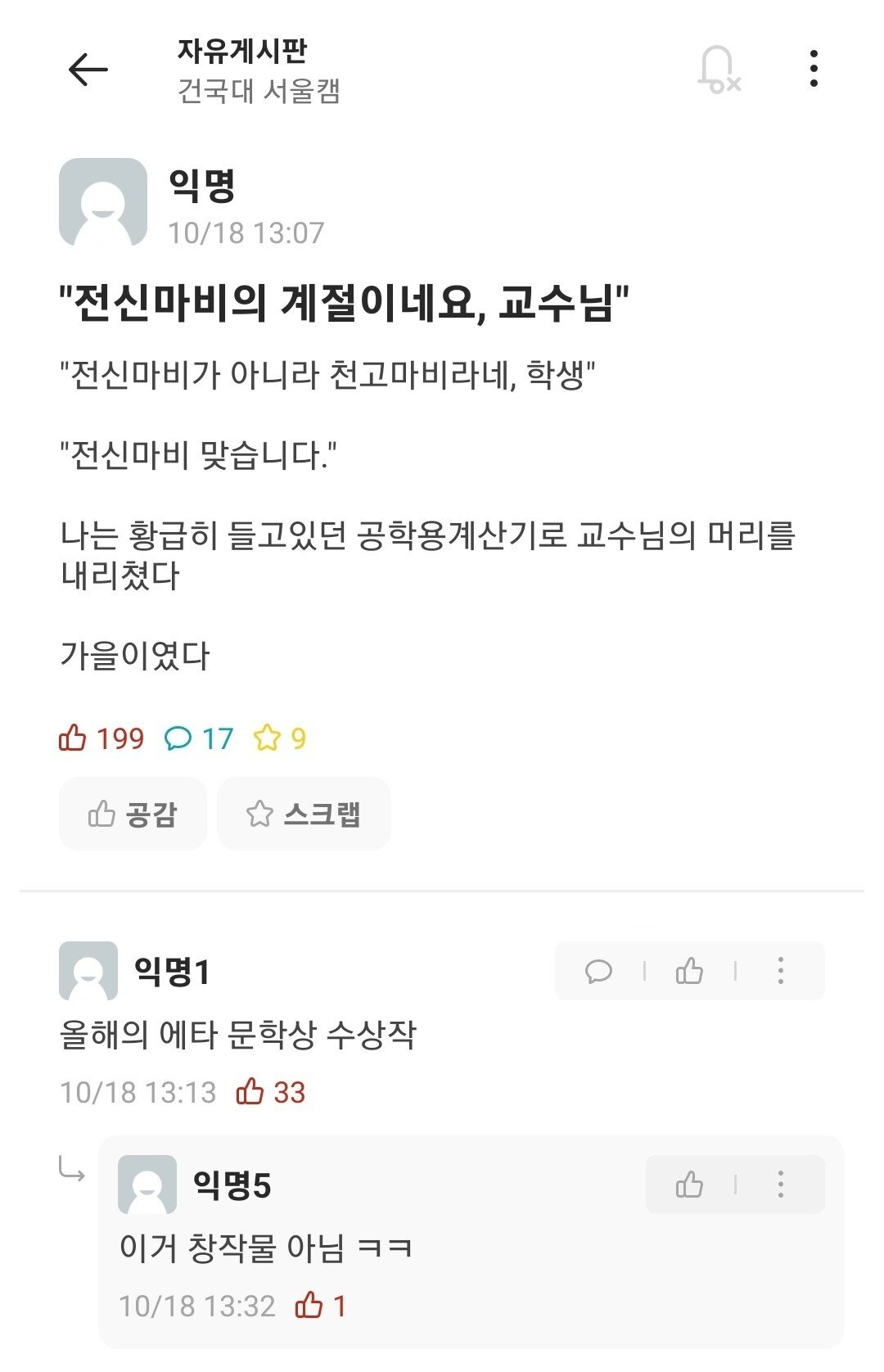 "전신마비의 계절이네요, 교수님"