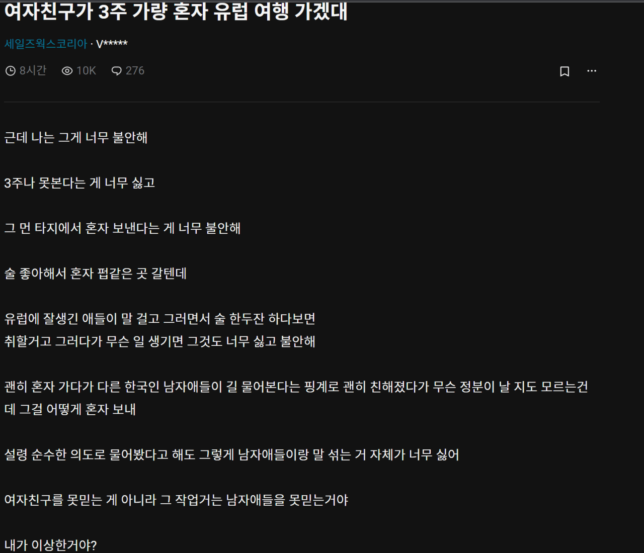 여자친구가 3주 가량 혼자 유럽 여행 가겠대