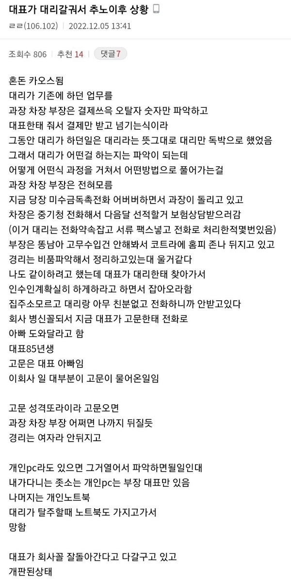 대표가 갈궈서 대리가 탈주한 썰