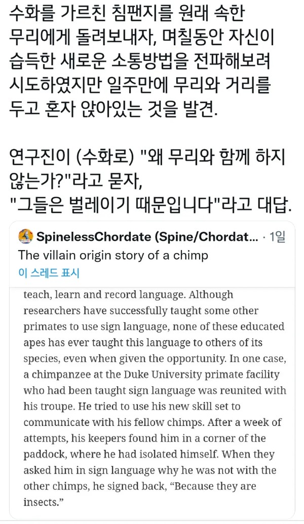 침팬지에게 수화를 가르친 결과