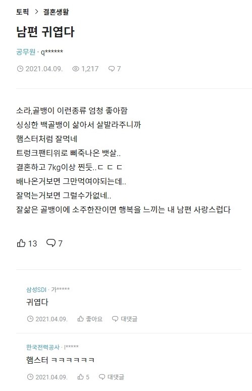 햄스터처럼 잘 먹는 남편