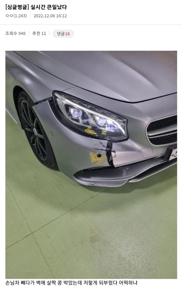 손님 차 살짝 콩 박은 사람