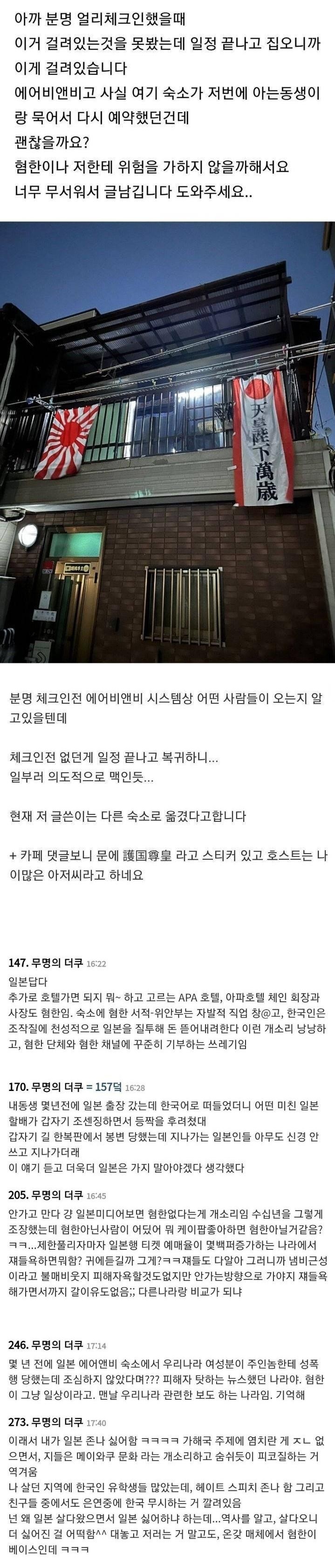 한국인 도발한 일본 에어비엔비 호스트