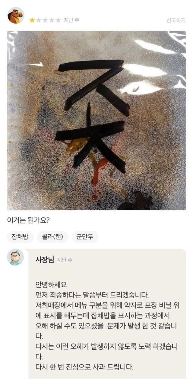 배달 잡채밥 오해 대참사