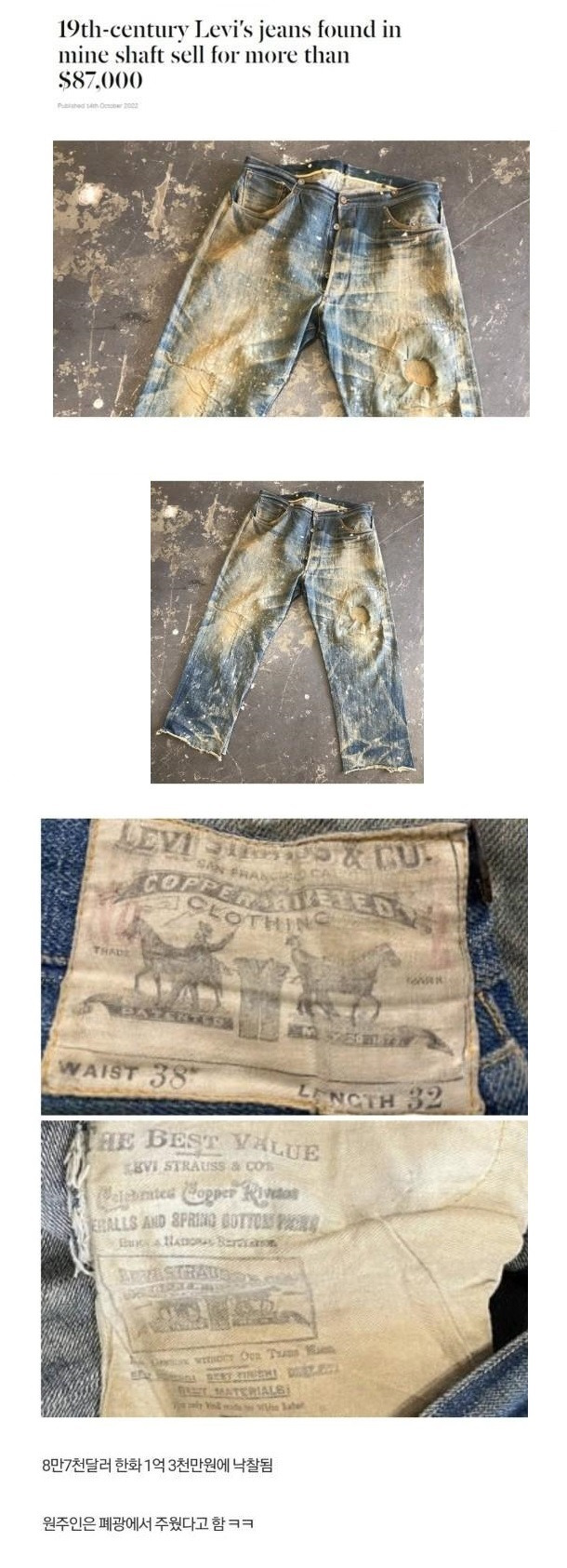 무려 140년 된 리바이스 청바지 가격