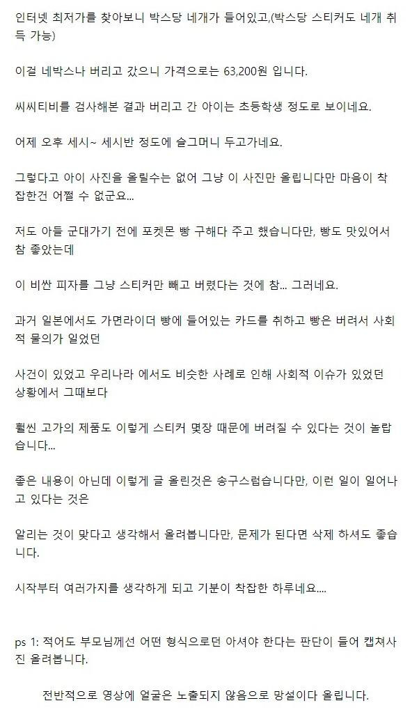 아마 돈쓴 걸 들키면 보호자에게 혼나는 아이일 것 같음. 의외로 돈이 있는데도 쓰면 무조건 혼내는 부모들이 있음. 부모 입장에선 혼내면 안쓰겠지 하겠지만, 그냥 비싼 물건 사서 그대로 버리거나 친구 주고 집 들어가는 애들 꽤 많음.