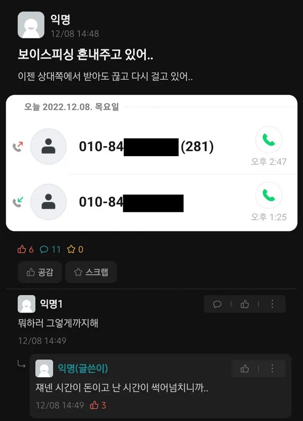 보이스피싱에 대처하는 광기의 대학생