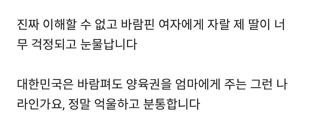 바람펴도 양육권은 엄마라니 말이 됨?