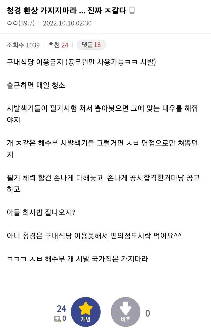 구내식당 이용 못하는 불쌍한 청원경찰