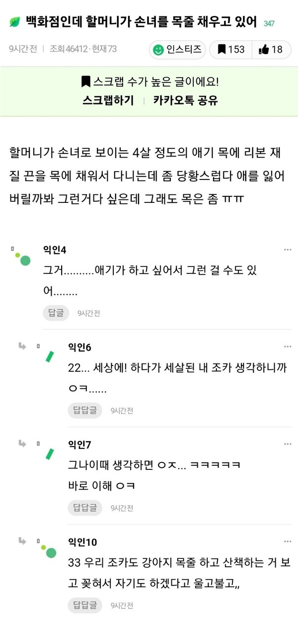 할머니가 손녀 목줄 채워서 돌아다녀..