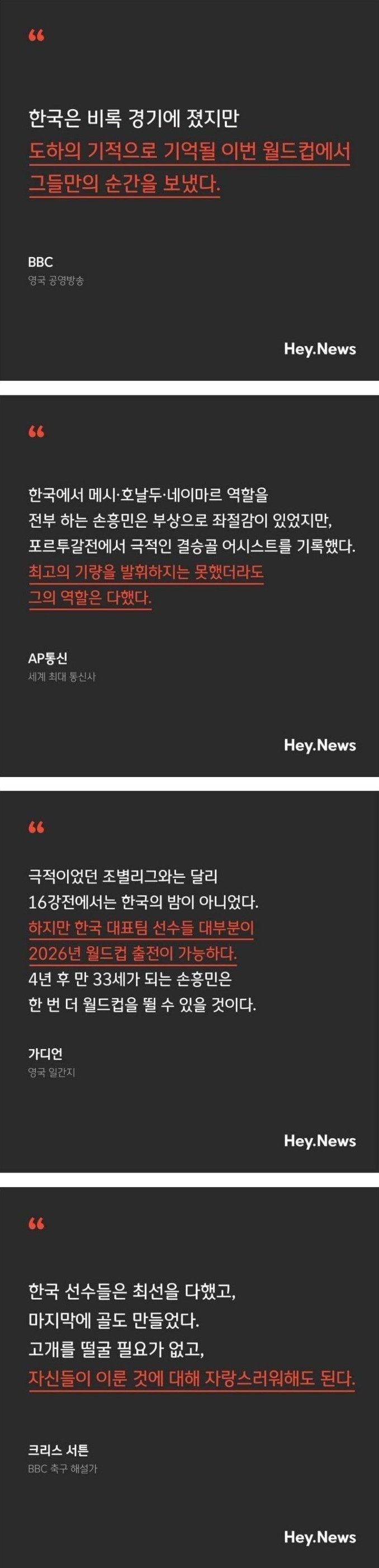 외신이 평가하는 한국 축구 대표팀