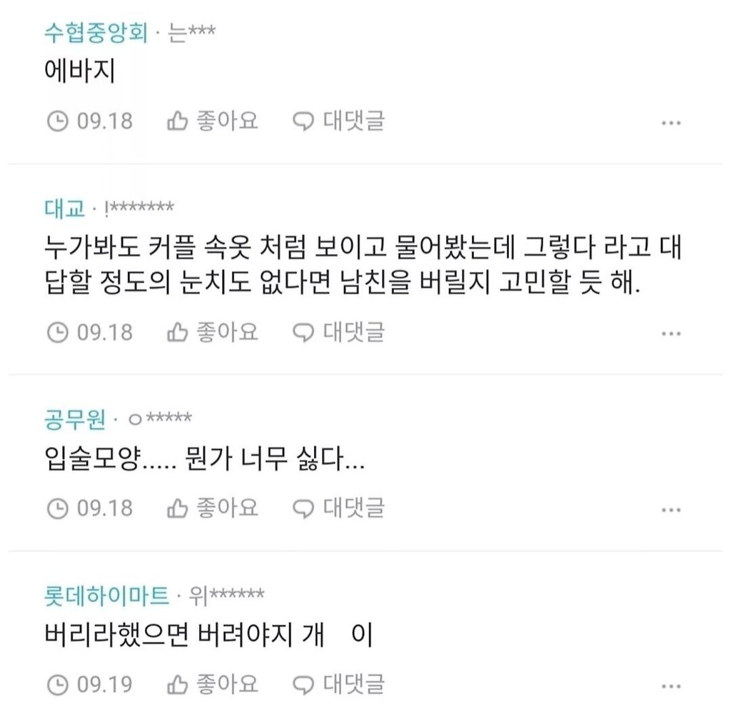 남친이 전 여친과 맞춘 커플 속옷을