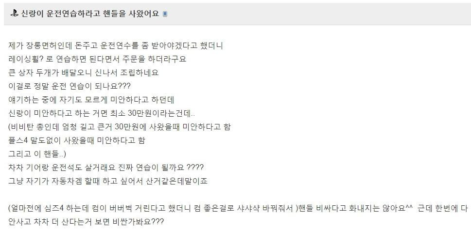 와이프 운전 연습하라고 핸들 사온 남편