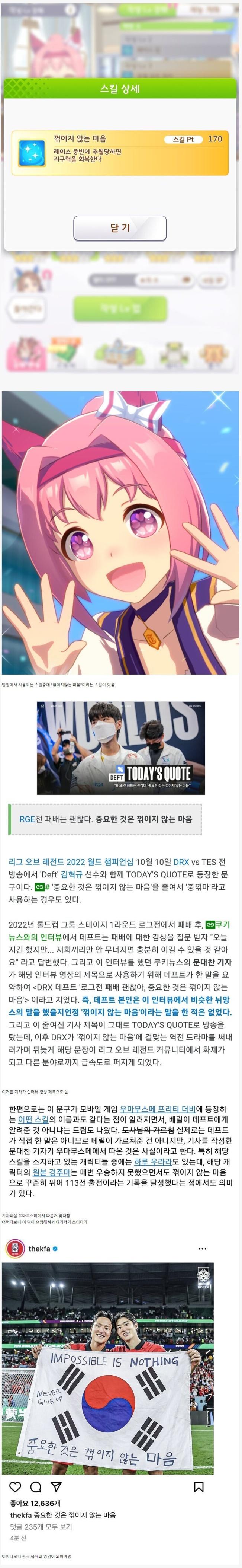 "중요한 것은 꺾이지 않는 마음" 의 유래