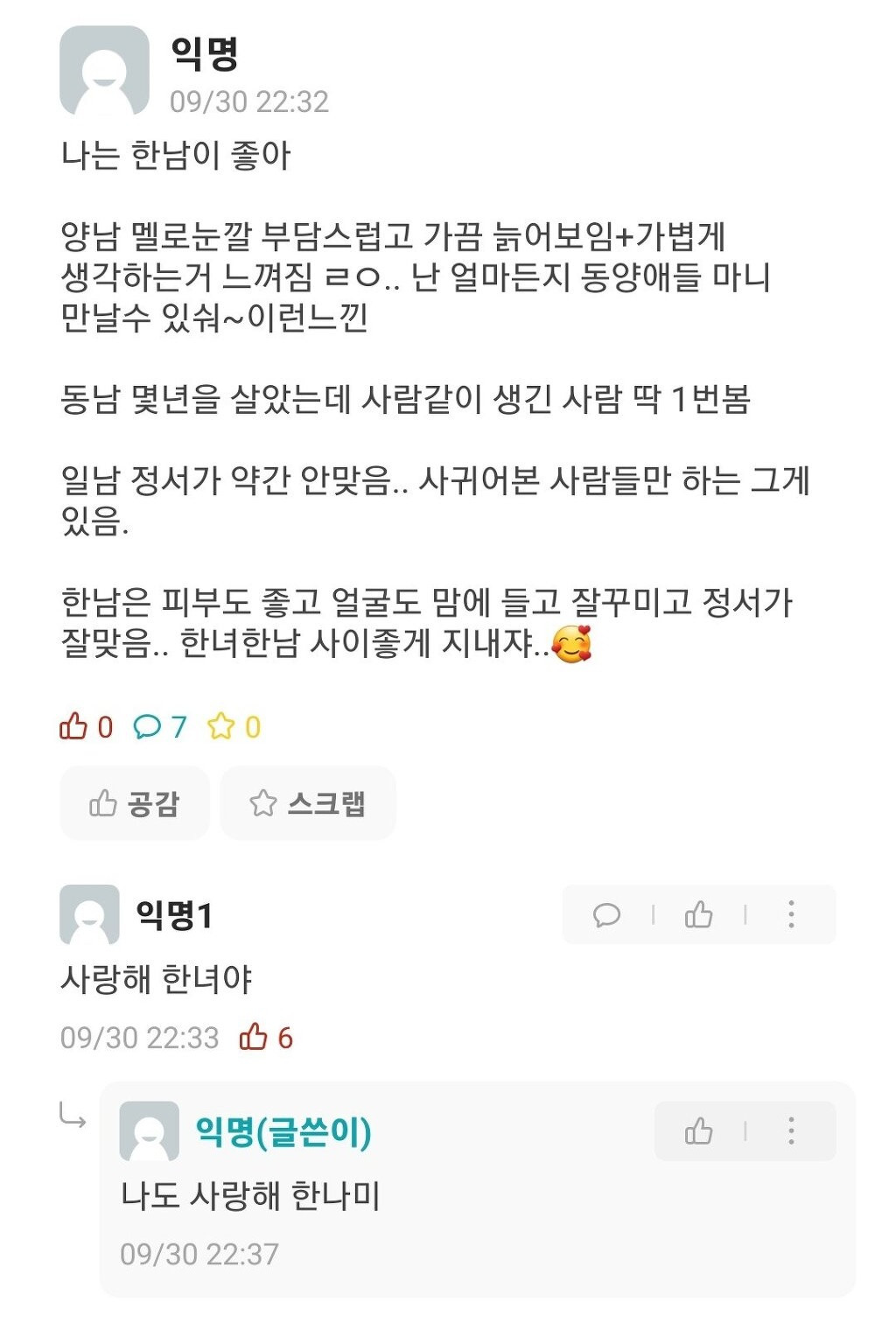 "나는 한남이 좋아"