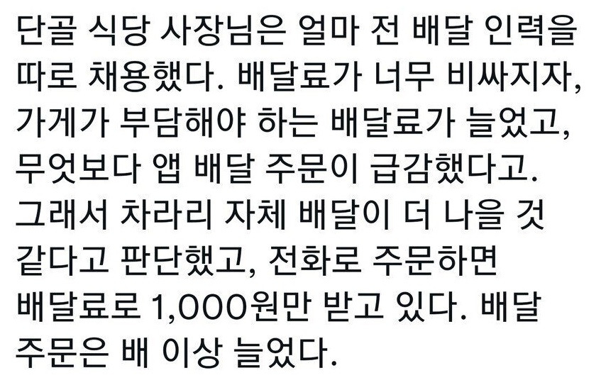 배달 인력을 따로 채용한 가게 근황