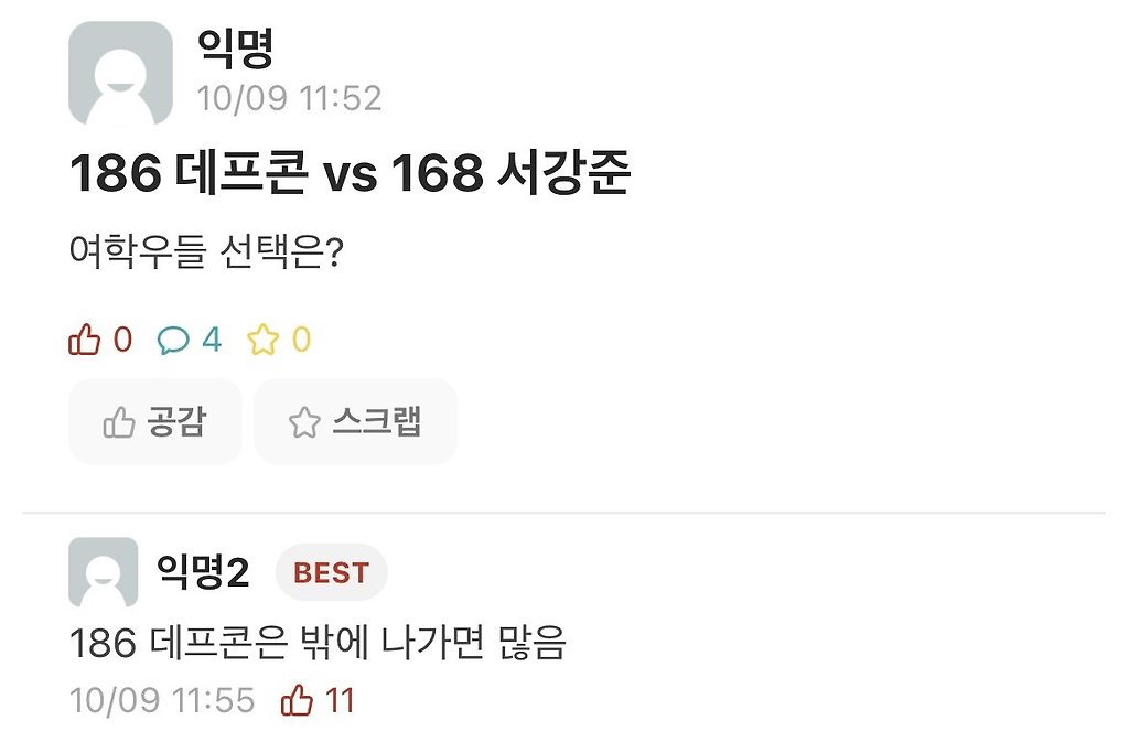 186cm 데프콘 vs 168cm 서강준