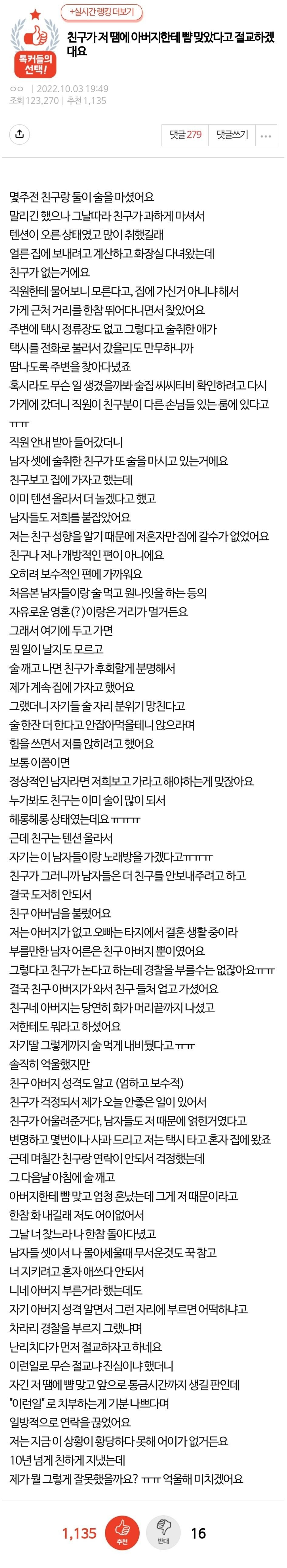친구가 저 때문에 뺨 맞았다고 절교 하겠대요