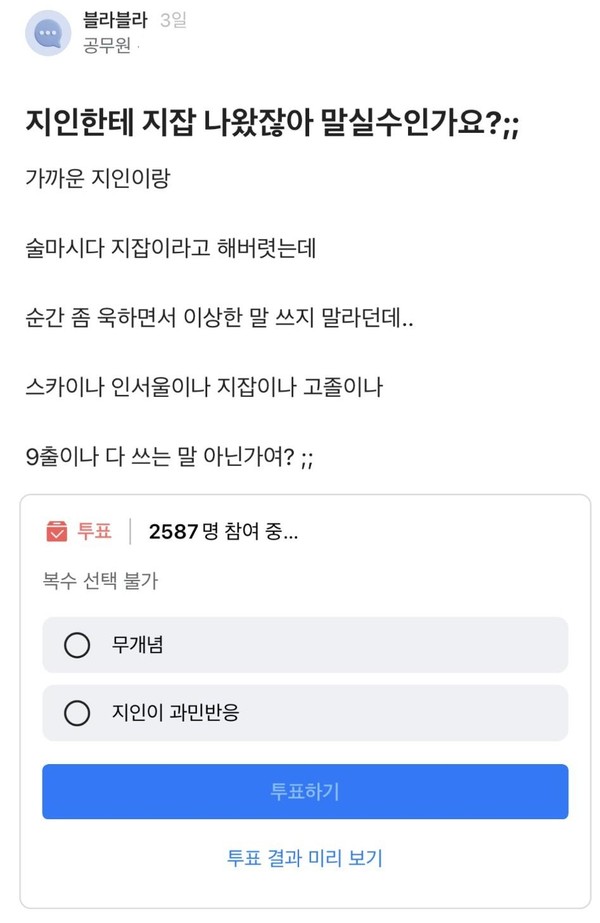 지인한테 "지잡 나왔잖아"가 말 실수인가요?