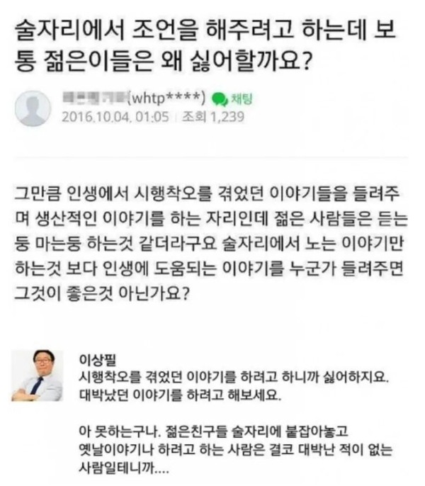 요즘 젊은이들은 왜 술자리 조언을 싫어하죠