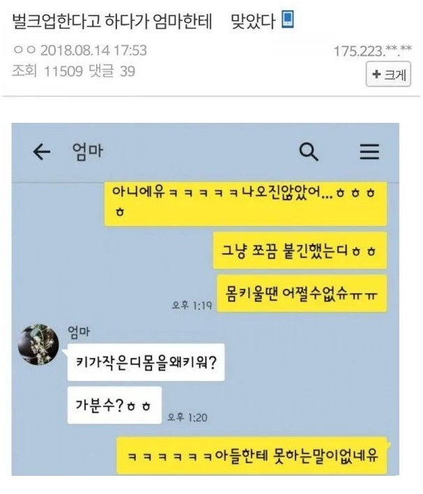 벌크업 한다고 했다가 엄마한테 들은 말