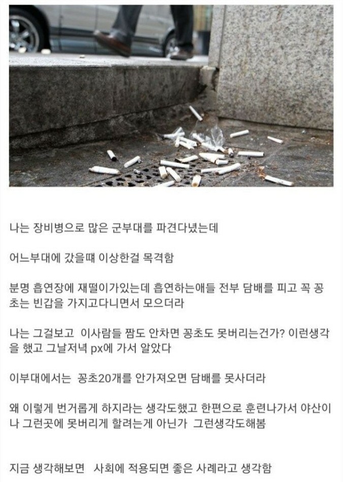군대라서 가능한 길거리 담배꽁초 없애는 법