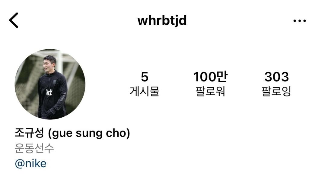 초 당 천명씩 증가하는 조규성 인스타 팔로우