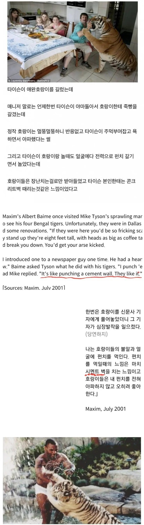 애완 호랑이 죽빵 치면서 놀았던 타이슨
