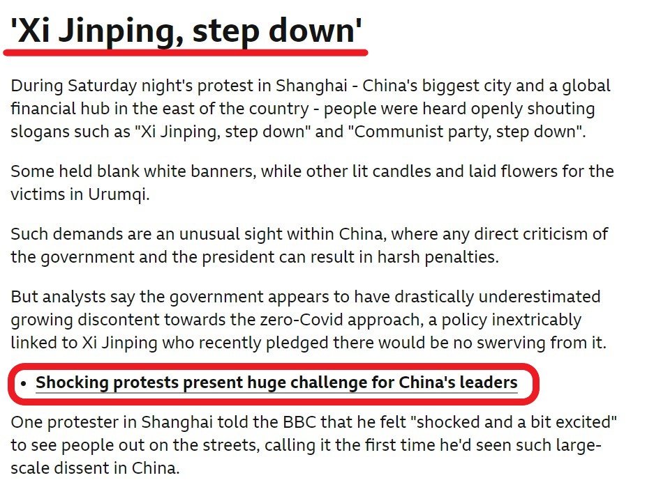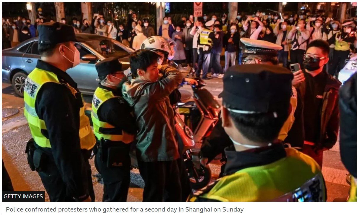 어제 시위는 최소 7군데 (우루무치, 상하이, 베이징, 정저우, 광저우, 충칭, 란저우)