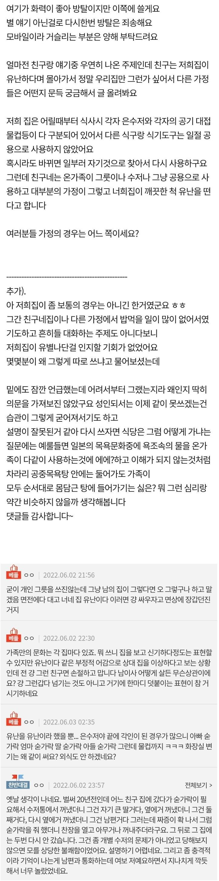 친구가 저희 집이 유난을 떤답니다