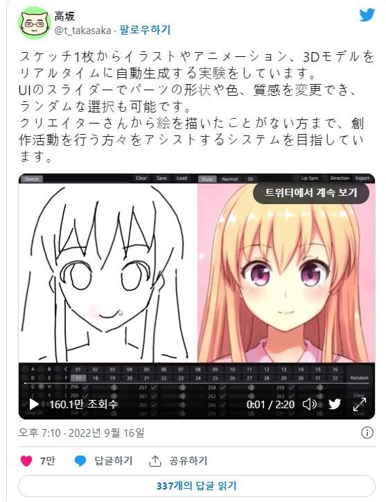"스케치 1장에서 일러스트와 애니메이션, 3D 모델을 실시간으로 자동 생성하는 실험을 하고 있습니다.