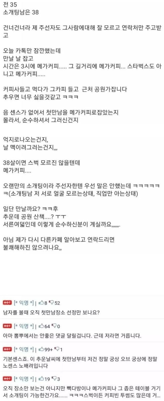 소개팅 장소를 메가커피로 잡았어요...