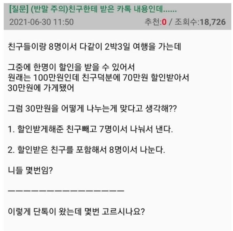 여행비 대폭 할인 해준 친구.. 돈 내야 할까?