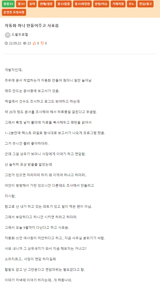 업무 자동화해줬다 털리고 사표 쓴 개발자